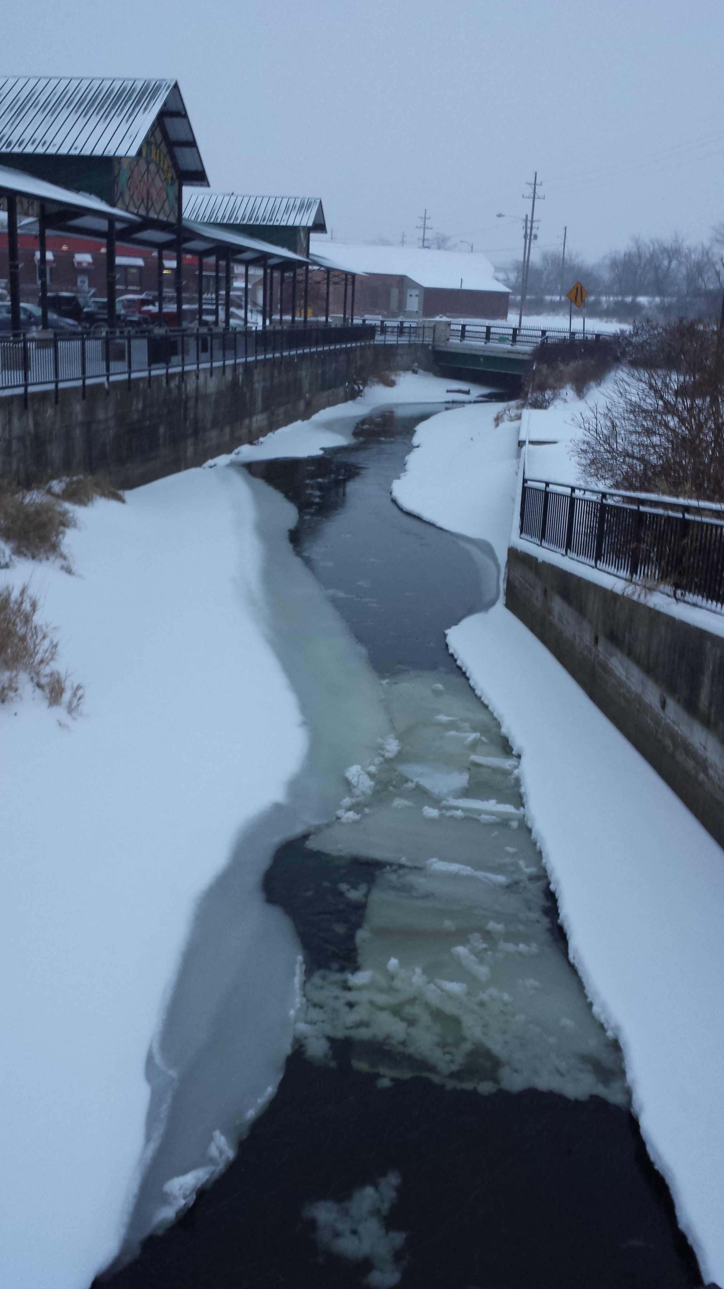 “The Cap” was 2,580-feet long, starting north of Liberty Street (behind now DPW on Water Street) to just south of Louis Glick (where the Toy House is located). A ten-foot wide and five-feet deep concrete channel was made for the river to flow. Then the area was concreted over to completely hide the river during normal flow times. The only time the river was visible was during flood times. The public was appeased; they did not see the filthy river and many families in the Jackson area made money during the Great Depression.